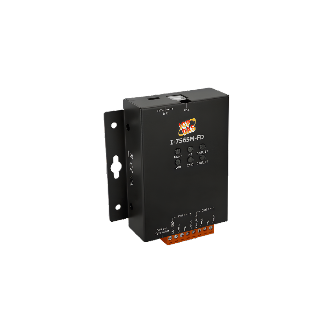I-7565M-FD is a USB to CAN/CAN FD (CAN with Flexible Data-Rate) converter with two CAN channels. It allows transmitting/receiving CAN/CAN FD frames and supports CAN2.0A/2.0B and CAN FD (ISO/Bosch) specifications and different baud rates for CAN/CAN FD frame. (10 kbps to 1000 kbps for CAN arbitration phase and 100 kbps to 10000 kbps for CAN FD data phase). When connecting I-7565M-FD to PC, PC will load the relevant device driver automatically (hot plug & play). Therefore, users can make data collection and processing of CAN Bus network easier and quicker by applying I-7565M-FD. The application fields can be CAN Bus monitoring, building automation, remote data acquisition, environment control and monitoring, laboratory equipment & research, factory automation, etc.