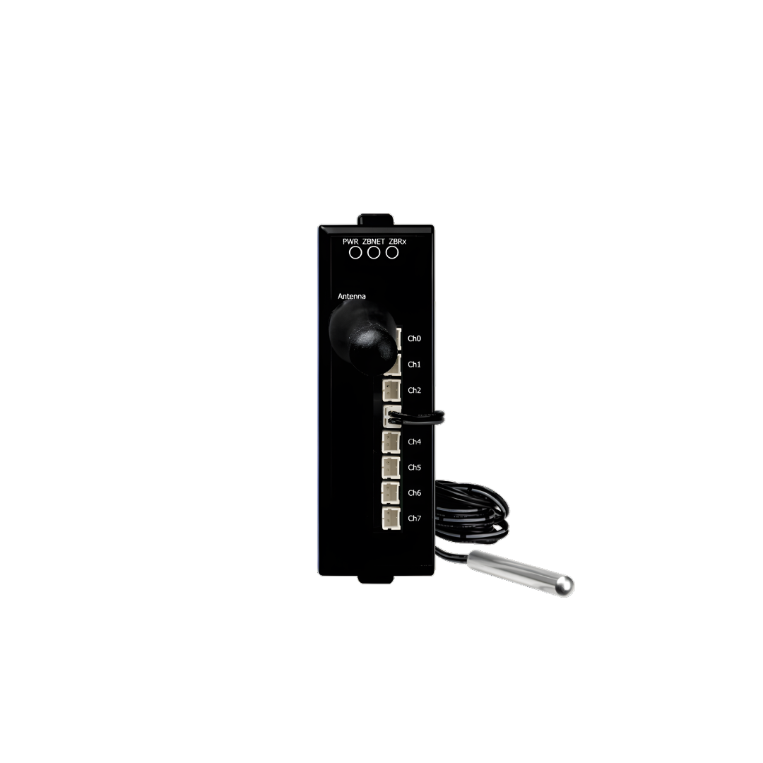 The ZT-2005-C8 is an 8-channel thermistor input module of ZigBee. It based on the IEEE802.15.4 standard that allows users to measuring temperature via a thermistor in a personal area ZigBee network. The typical transmission of ZT-2005-C8 is 700 meters (LOS, line of sight), with a transmission frequency range of between 2.405 GHz and 2.48 GHz, separated into 5 MHz sectors, providing 16 channels. Users can easily configure the module address, protocol, checksum, ZB-PID and ZB-channel settings using a combination of rotary and DIP switches. ZT-2005-C8 has 4 kV ESD protection and 1000 VDC intra-module isolation.